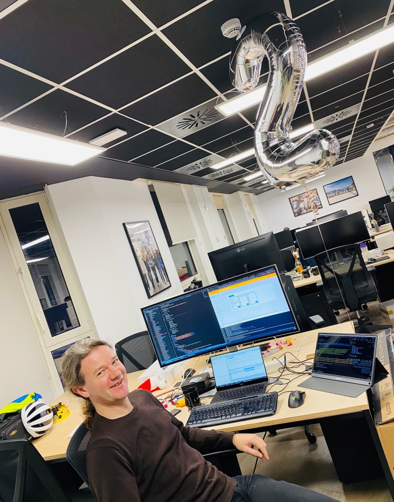 Karl celebrating his two year anniversary at Wagestream, just weeks before the product innovation competition. Photo courtesy of yours truly.